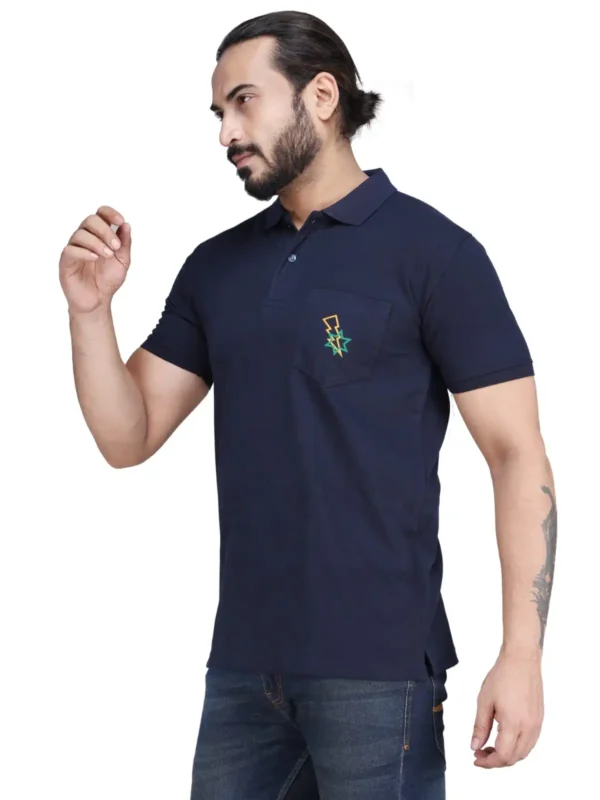 - Stylish Polo: This navy blue polo shirt features a classic design with a chest pocket, perfect for casual and semi-formal occasions.